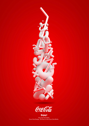 Poster for the Mashup Coke Project Year: 2015 Kiss The Past Hello Celebrating 100 years of the Coca-Cola Bottle 3D by José Macena
